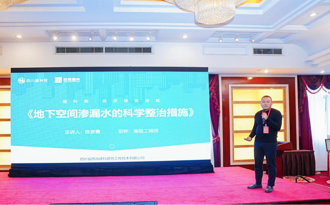 建科公司战略合作单位负责人陈彦勇则聚焦具体技术应用,针对房屋渗漏修缮技术规程展开专业分享。他结合多年工程实践经验,深入剖析了当前渗漏治理领域存在的行业乱象以及常见的错误施工方式,并针对性地提出地下空间渗漏水的科学整治措施,从材料选型、工艺优化、质量管控等多个维度给出实操性建议,为现场参会者提供了极具价值的技术参考,赢得阵阵掌声。
